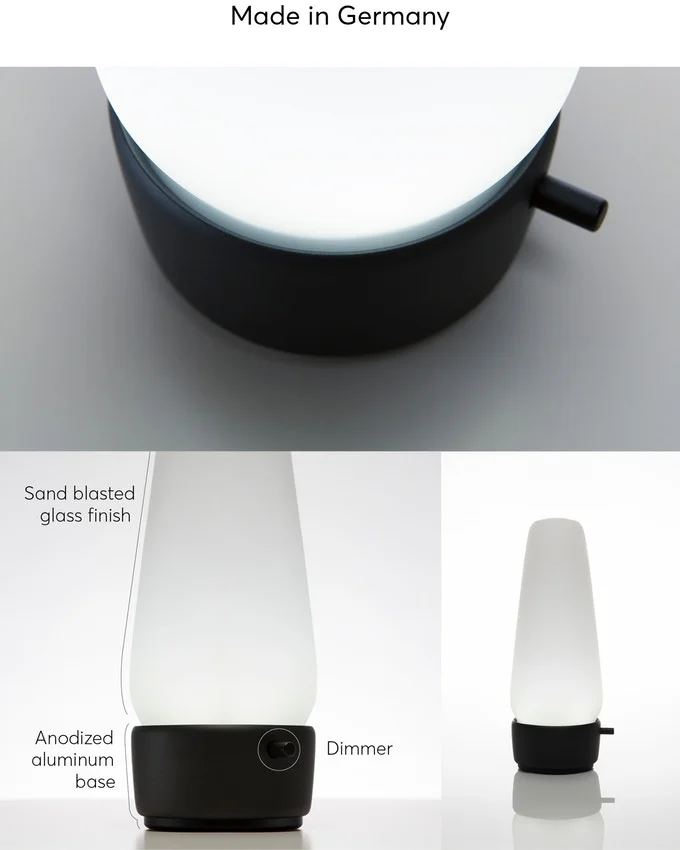 COVI is a piece of furniture first and foremost - it blends stylishly into your home while supporting your daily activities. COVI’s design pays homage to a traditional kerosene lamp. The knob, previously reserved for regulating the flow of oil, has been modernized into a dimming switch that controls high-quality warm and cool white LEDs.